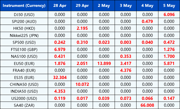 Please be advised that the dividends of the following index CFDs will be adjusted by upcoming ex-dividend dates. The comment for trading index CFDs will be in the following format “Div& <Product Name>&<Net Volume>”which show in the balance after the close of the day before the dividend payment date.